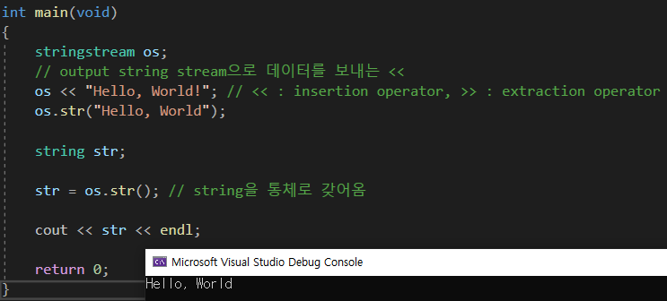 또한 string str을 사용하는 것 이 아닌, 다음과 같이 직접 사용할수도 있다.
