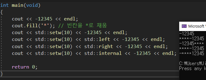 iomanip (input/output manipulators)를 header에 include 해준다음 사용하면 다음과 같이 사전에 방지할 수 있다.