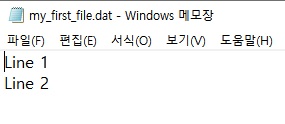 위의 코드를 실행시 직전에 만든 파일을 정상적으로 읽어오는 것 을 확인할수 있다. 결과로는 Line 1 Line 2이 출력된다.