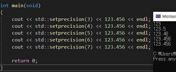 정밀도 4의 결과를 보면 123.4가 아니라 123.5가 되있다. 이는 5번째 숫자인 6을 올림을 하여서 123.5가 된 것 이다.