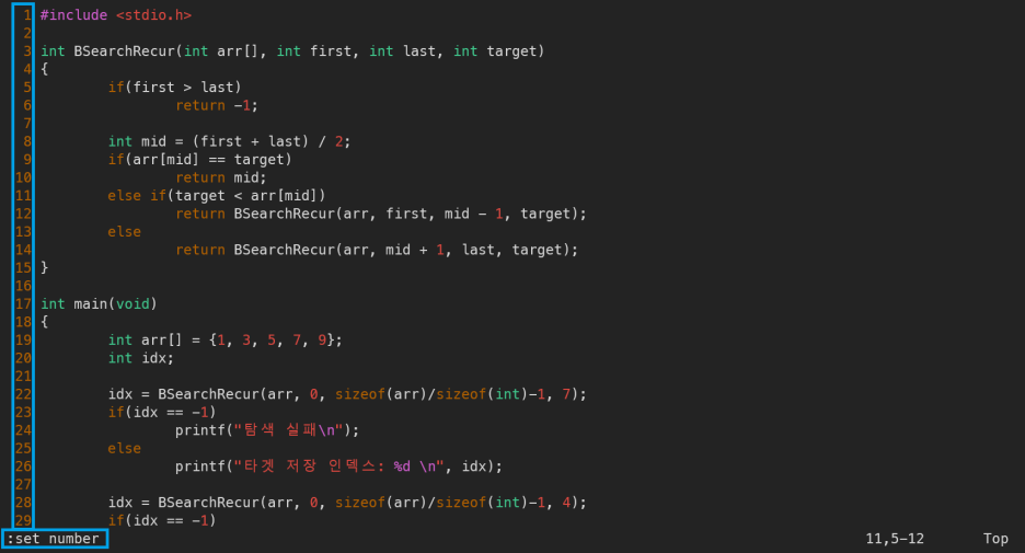 행번호는 또한 [:]모드에서 set number라 입력해주면 행번호가 생기는것을 확인할 수 있다.