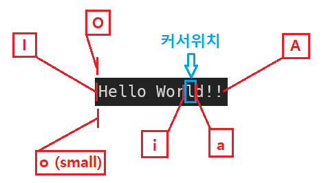 실질적으로 코드편집을 하는 단계이다. 좌측 하단을 보면 -- INSERT -- 라고 나타나있는경우에 해당된다.