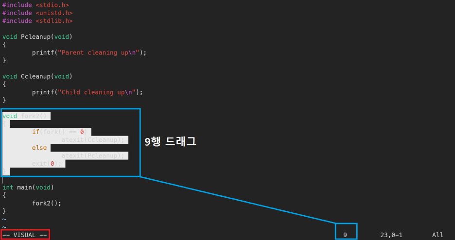 V를 누르면 들어가는 비주얼 모드의 경우 다음 사진과 같이 여러행을 드래그 할수 있으며, 복사를 한후 붙혀넣기나 여러행 한번에 삭제등이 가능하다.