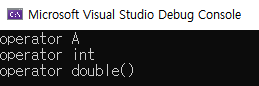 위의 코드에서 a = b를 보면 컴파일러는 B타입의 객체를 A 타입으로 변환하기 위해 타입 변환 연산자 b.operator A()를 호출한다. 또한 타입변환 연산자는 반환 타입을 지정하지않는다.