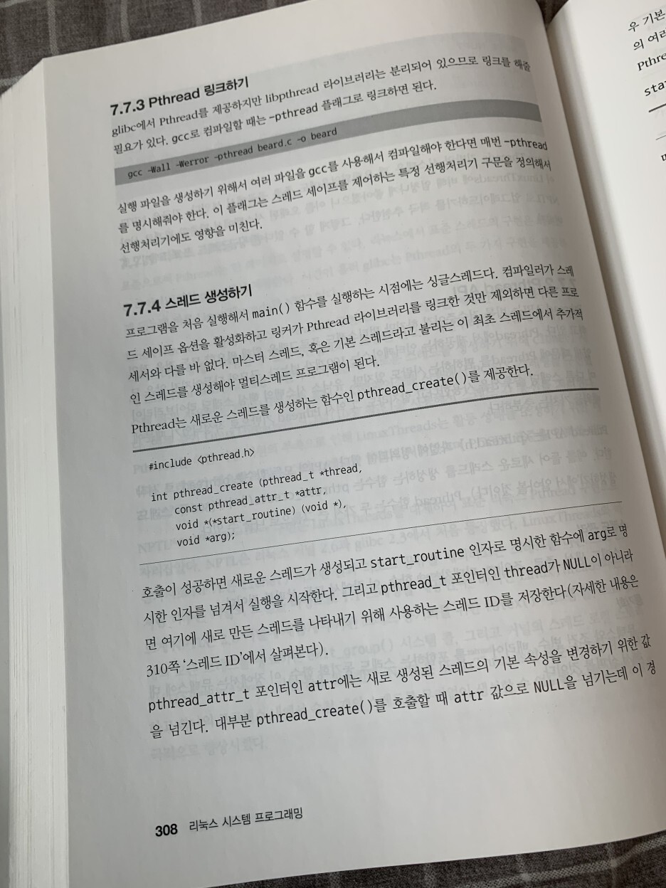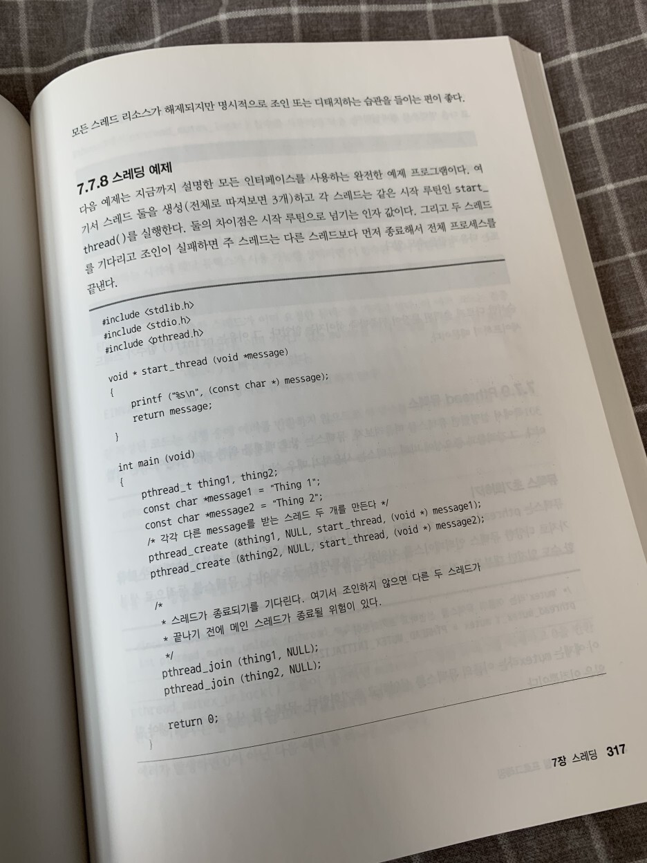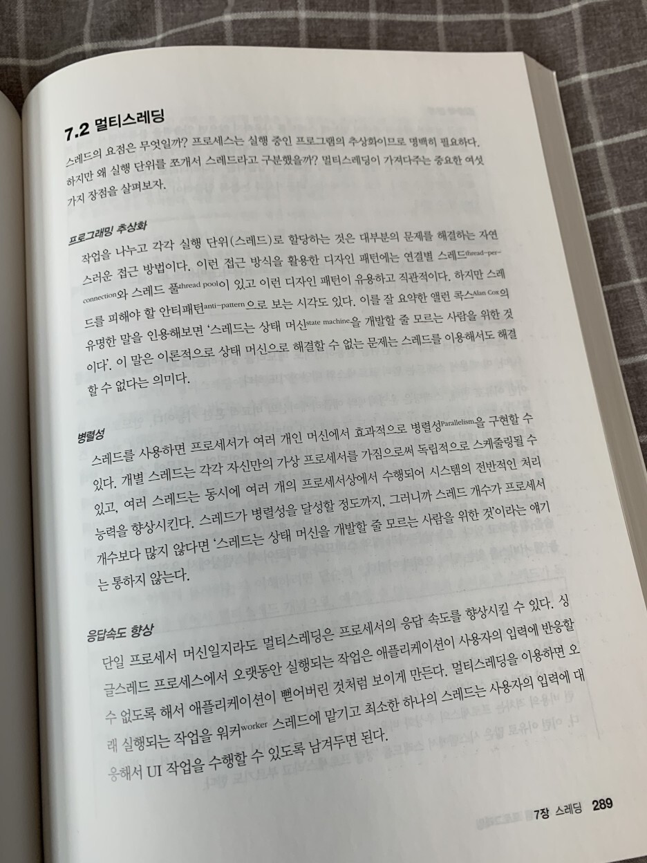 간단한 흥미 유발의 내용과 더불어 전반적인 설명을 진행해주고 있다. 대표적으로 공부했던 단원중 스레드에 관한 7단원에 대해 언급해보겠다.