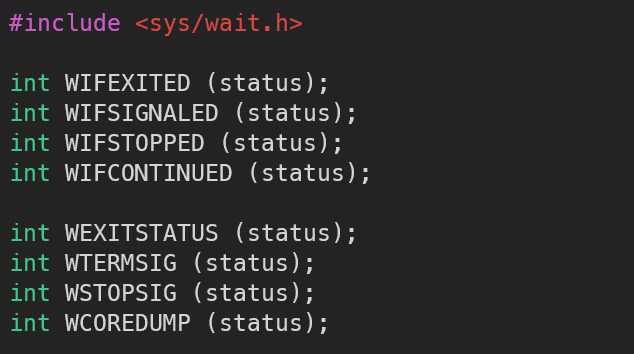 이중 대표적인 WIFEXITED와 WEXITSTATUS 에 대하여 설명후 예시를 보이겠다.